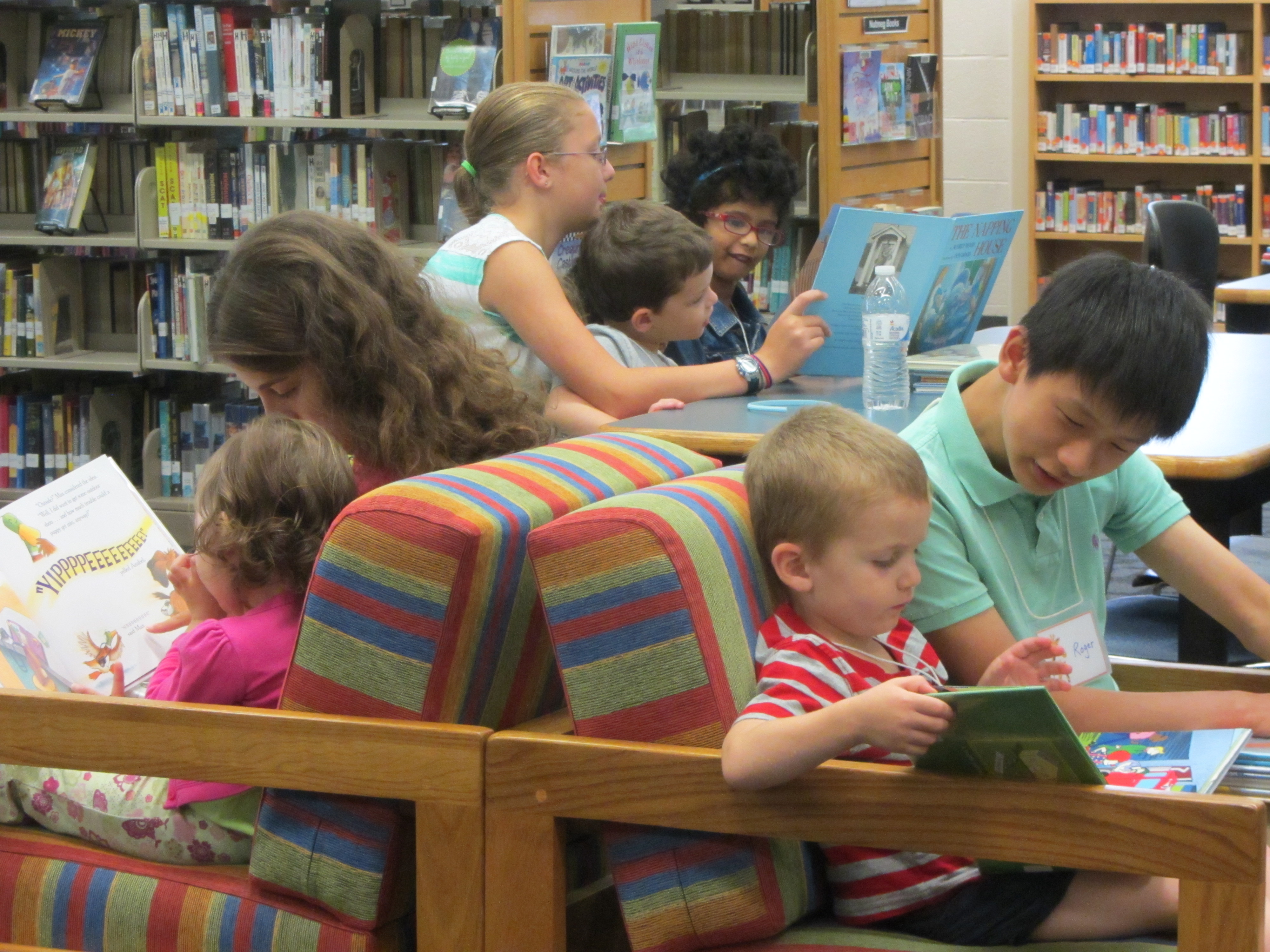 Another summer session of Teens Read to Tots has come to an end. Cheshire Library has been running this popular summer program for many years. The program pairs “tots” ages 3-5 with “teens” ages 12-17 for stories and crafts. It’s hard to say who has more fun, the younger kids or the older ones, and some wonderful bonds form over the 6-week program.