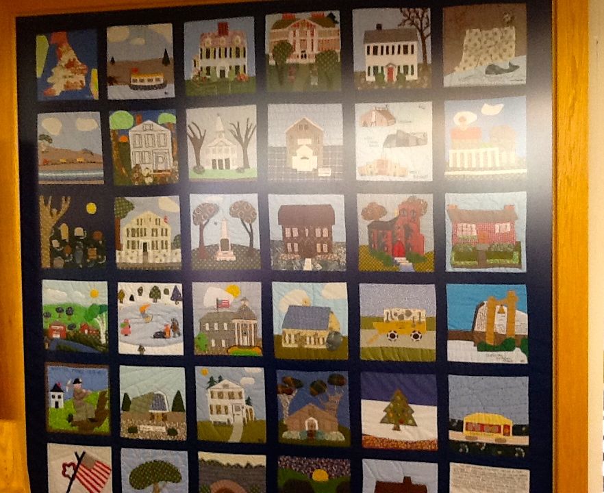 And take a look at the beautiful Cheshire Bicentennial Quilt hanging up at the Library on the main level. It was made by 25 local artists beginning on July 4, 1975 and presented to the Town Council on February 9, 1976.
