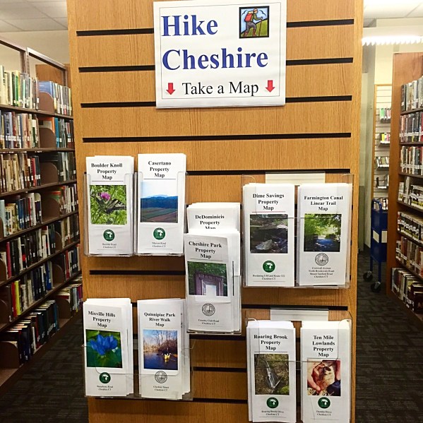 June 6th is American Hiking Society’s National Trails Day, the country’s largest celebration of trails.  It’s the perfect time to take advantage of the wonderful hiking opportunities Cheshire has to offer.  The Cheshire Library has a display located on the main and lower levels with trail maps for the various hiking areas in Cheshire.  Come on it, grab a map or two and enjoy some great scenery!  The Cheshire Land Trust will have a two-hour exploration of the Old Farms Reserve and DeDominicis Property on Saturday from 9-11.  They will be meeting at 9:00 am at Old Farms Preserve on Old Farms Road.  For other activities throughout the state, check the Connecticut Woodlands website here.