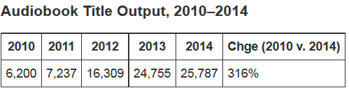 I am a big audiobook fan, and I’m not the only one! Audiobooks sales are booming. In fact, audiobooks are the fastest-growing segment in publishing . Much of this surge in popularity can be related to the increasing popularity of the digital download, though most audiobooks are available in both cd and digital formats. The production quality of audiobooks has also increased dramatically in recent years, with accomplished performers bringing their talents to the audiobook realm. Not surprisingly, publishers are producing more and more audiobooks – look how the publication of audiobooks has grown:
