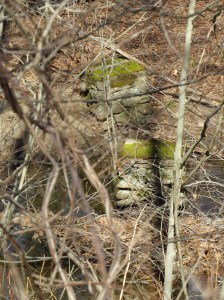 But the pillars remained. They knew they existed, and they remembered the history better than I did. Although in my teen years we played in that stream, walked up it to the big waterfall, the thick brush, briars, and mud discouraged us from further exploration (as well as the man who owned the property, who liked to fire his gun if he saw anyone so much walk down the road. And I was his papergirl.).
